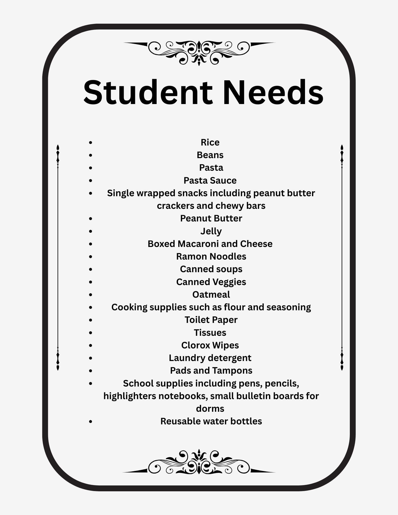 Please consider bringing some canned goods from the list below to help support students at Austin Presbyterian Theological Seminary.